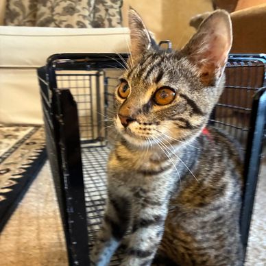 With a tail that never stops swishing and a purr that could melt the iciest heart, George lives for adventure, snuggles, and the occasional dramatic zoomie across the living room. Whether he's chasing sunbeams, batting at toys with wild abandon, or curling up beside you for a cozy nap, George brings joy and laughter to every moment. He's curious, cuddly, and just the right amount of mischievous — a true feline friend who turns any house into a home.